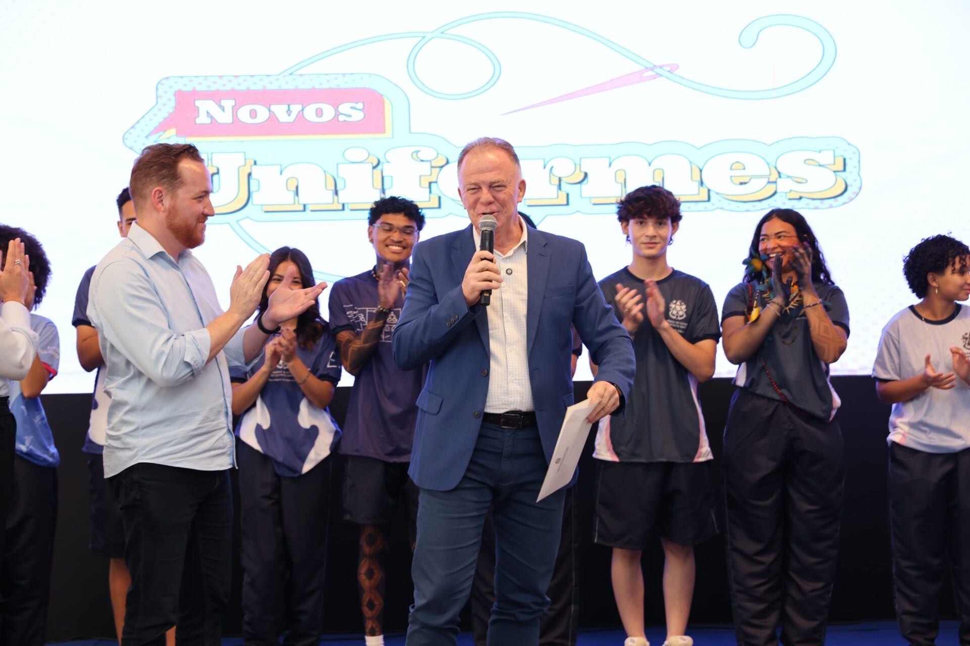 O secretário de Estado da Educação, Vitor de Angelo, avalia que o momento representa um marco simbólico para a educação capixaba pois, a partir deste novo modelo, os uniformes passarão a ser distribuídos gratuitamente aos alunos da Rede Estadual, algo inédito até então, ampliando o acesso e contribuindo para a redução das desigualdades. “Essa entrega gratuita representa um avanço importante para a equidade no ambiente escolar e para o apoio às famílias. Além disso, o processo de criação colaborativa reforça o pertencimento dos nossos estudantes e valoriza a identidade da escola pública capixaba”, afirmou.