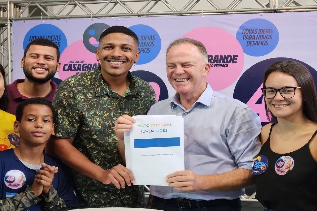 Renato Casagrande (PSB) foi o primeiro candidato ao governo do Estado a assinar o Pacto pelas Juventudes, um documento elaborado pelo Conselho Estadual da Juventude (Cejuve) em discussão coletiva com a juventude capixaba, com propostas para diversas áreas. Os candidatos Audifax Barcelos (Rede) e Capitão Sousa (PSTU) também foram convidados para assinar. Manato (PL), Aridelmo Teixeira (Novo), Guerino Zanon (PSD) e Claudio Paiva (PRTB) ainda serão procurados.O presidente do Cejuve, Ramon Matheus, informa que Audifax ainda não respondeu se vai assinar. Já Capitão Sousa disse que vai aderir ao pacto nas próximas semanas.