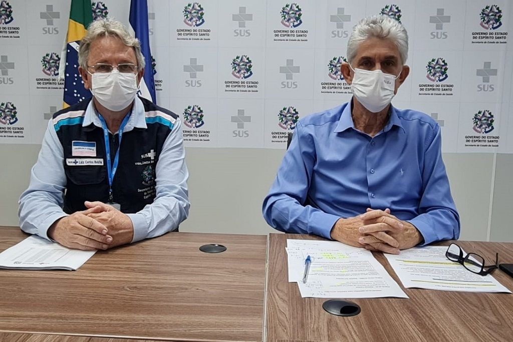 Da semana epidemiológica 44, que corresponde ao final de outubro, até a 46, que é a atual, houve aumento de 156% nos casos de Covid-19 no Espírito Santo. O número de notificações saltou de 3,1 mil para 8,4 mil. Somente nessa quarta-feira (17), foram 1 mil. As informações foram divulgadas pelo secretário estadual de Saúde, Tadeu Marino, em coletiva de imprensa realizada nesta sexta-feira (18), da qual também participou o subsecretário de Vigilância em Saúde, Luiz Carlos Reblin. Marino afirma que o Estado vive a sexta onda da Covid-19, sendo necessário redobrar cuidados, como higienização das mãos e uso de máscaras em ambientes fechados, principalmente idosos e quem tem imunossupressão. “A vacinação é extremamente importante, assim como o uso de máscaras. A vacina faz imunidade de rebanho, menos possibilidade de infecção, e mesmo que a pessoa seja infectada, há menos possibilidade de internação, de casos graves e de óbito”, diz.
