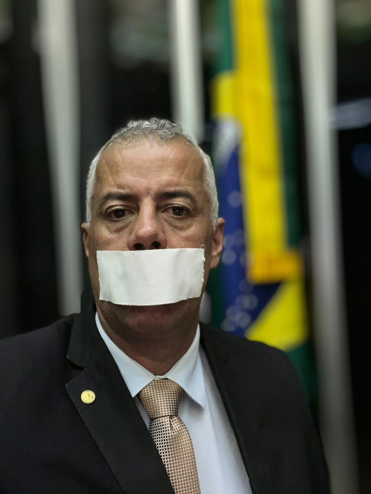Com esparadrapo na boca, aliados do ex-presidente Jair Bolsonaro (PL) ocupam a Mesa Diretora para evitar o início da sessão