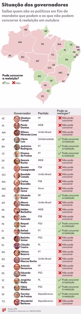 Seja qual for o resultado que sair das urnas em outubro, as eleições estaduais terão um alto índice de renovação neste ano. Dos 27 governadores, 18 não podem tentar a reeleição. Isso acontece porque a lei brasileira não permite três mandatos consecutivos.