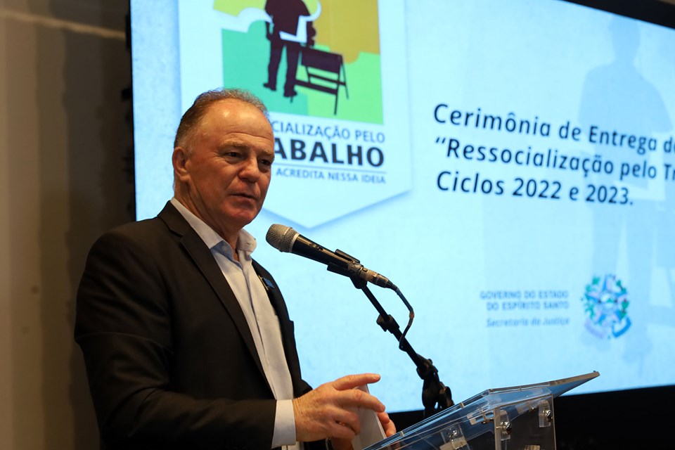 O Governo do Estado, por meio da Secretaria da Justiça (Sejus), realizou, nesta terça-feira (12), a entrega do Selo Social “Ressocialização pelo Trabalho – ciclos 2022 e 2023”. O Selo Social é uma iniciativa que tem como objetivo dar visibilidade e reconhecimento às empresas e organizações que absorvem mão de obra de presos e egressos do sistema prisional. A solenidade foi realizada no Palácio Anchieta, em Vitória, com a presença do governador Renato Casagrande.