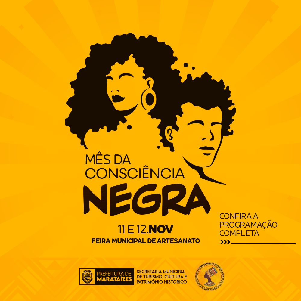 Nos dias 11 e 12 de novembro, a Secretaria Municipal de Turismo, Cultura e Patrimônio Histórico estará com uma programação sobre o mês da Consciência Negra, que acontecerá na Feira Municipal de Artesanato, confira a programação abaixo: