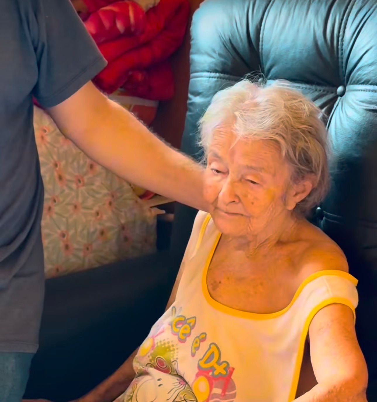 Dona Lourdes, de 87 anos, vive praticamente presa em uma casa por falta de acessibilidade. O imóvel, que fica no segundo andar, conta apenas com uma escada caracol, que impossibilita o deslocamento da idosa até para hábitos simples como pegar sol.