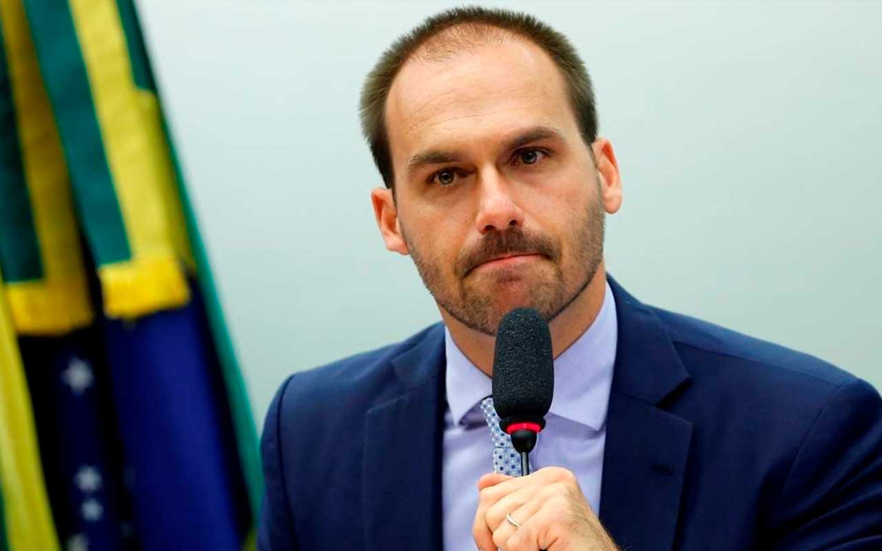 Eduardo Bolsonaro está nos Estados Unidos desde fevereiro. Ele chegou a pedir licença do mandato em março, mas o prazo permitido para a ausência justificada terminou em julho.