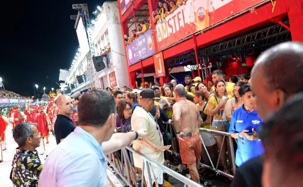 A agressão e confusão generalizada aconteceu durante a apresentação da Mocidade Unida da Glória (MUG), quarta escola a desfilar.