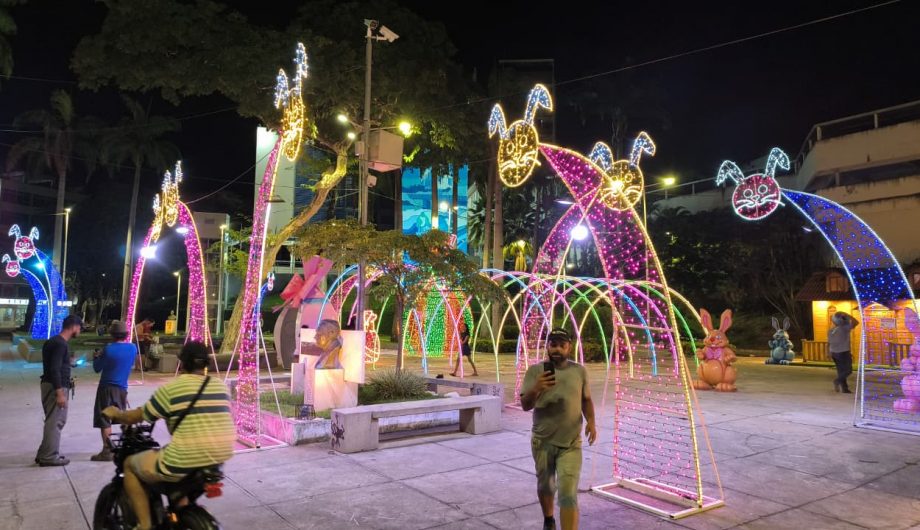 Entre os destaques da decoração estão o túnel temático iluminado, esculturas de coelhos, ovos de Páscoa, ovos gigantes em aramado e a Casa da Páscoa, criando um cenário ideal para passeios, fotos e momentos de convivência entre moradores e visitantes.