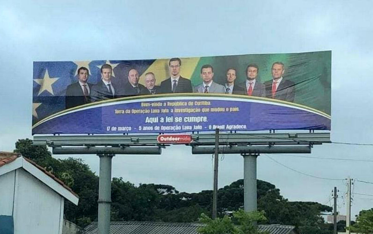 “Bem-vindo à República de Curitiba. Terra da Operação Lava Jato, a investigação que mudou o país. Aqui a lei se cumpre. 17 de março — 5 anos de Operação Lava Jato — O Brasil Agradece.” Era essa a frase estampada no outdoor, pelo qual Castor assumiu ter pagado. Como ficou comprovado pelas revelações da Vaza Jato, pelo inquérito da Operação Spoofing e por julgamentos do Supremo Tribunal Federal, era tudo uma farsa. Já existem até ações pedindo investigação e prisão de Deltan Dallagnol por ter adulterado delação premiada de ex-executivo da Petrobras com objetivo de incriminar o PT.