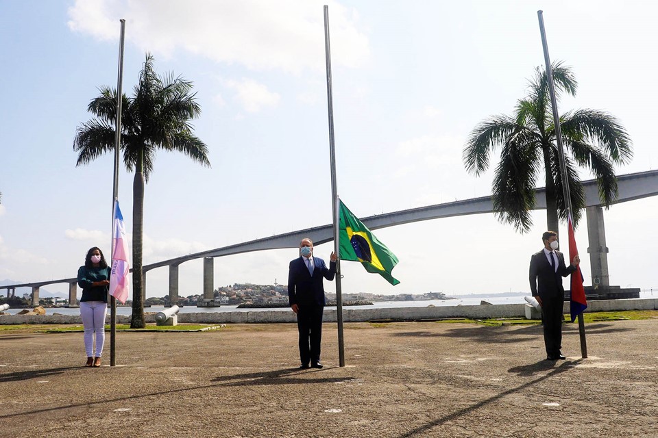 O governador do Estado, Renato Casagrande; a vice-governadora Jaqueline Moraes; e o prefeito de Vila Velha, Arnaldinho Borgo, hastearam as bandeiras do Brasil, do Espírito Santo e do município, respectivamente. Durante a solenidade, foi feito um minuto de silêncio em homenagem às vítimas da Covid-19.